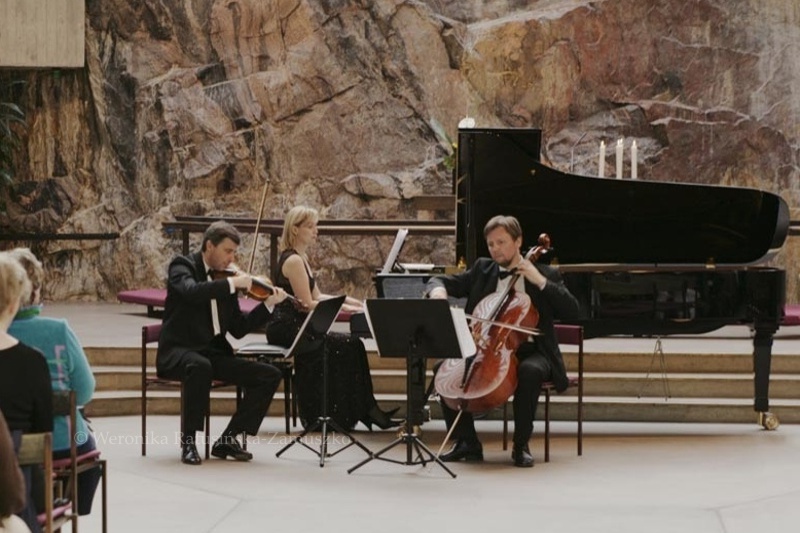 Wykonanie Tria na skrzypce, wiolonczelę i fortepian przez Varsovia Piano Trio, Kościół Temppelinaukio, Helsinki, 2009